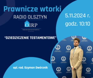 Serdecznie zapraszamy na kolejną audycję z cyklu PRAWNICZE WTORKI, która odbędzie się we wtorek 5 listopada 2024 r. o godz. 10:10.